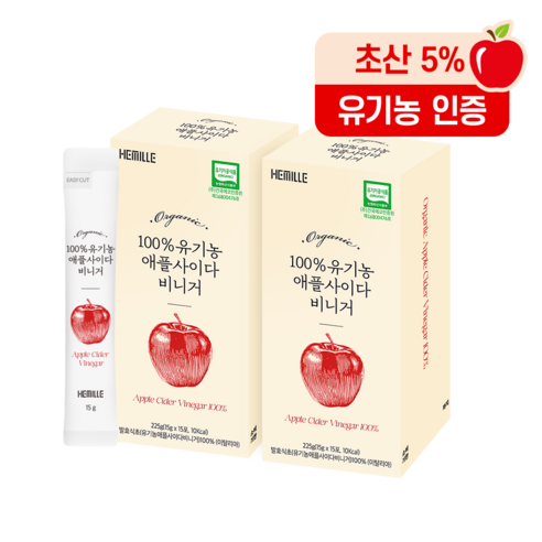 헤밀레 100% 유기농 애사비 스틱 애플사이다비니거 15포, 225g, 2박스 - 음용식초 | 쿠팡